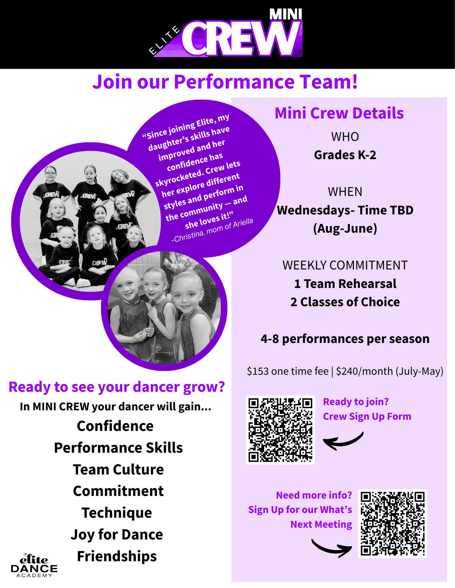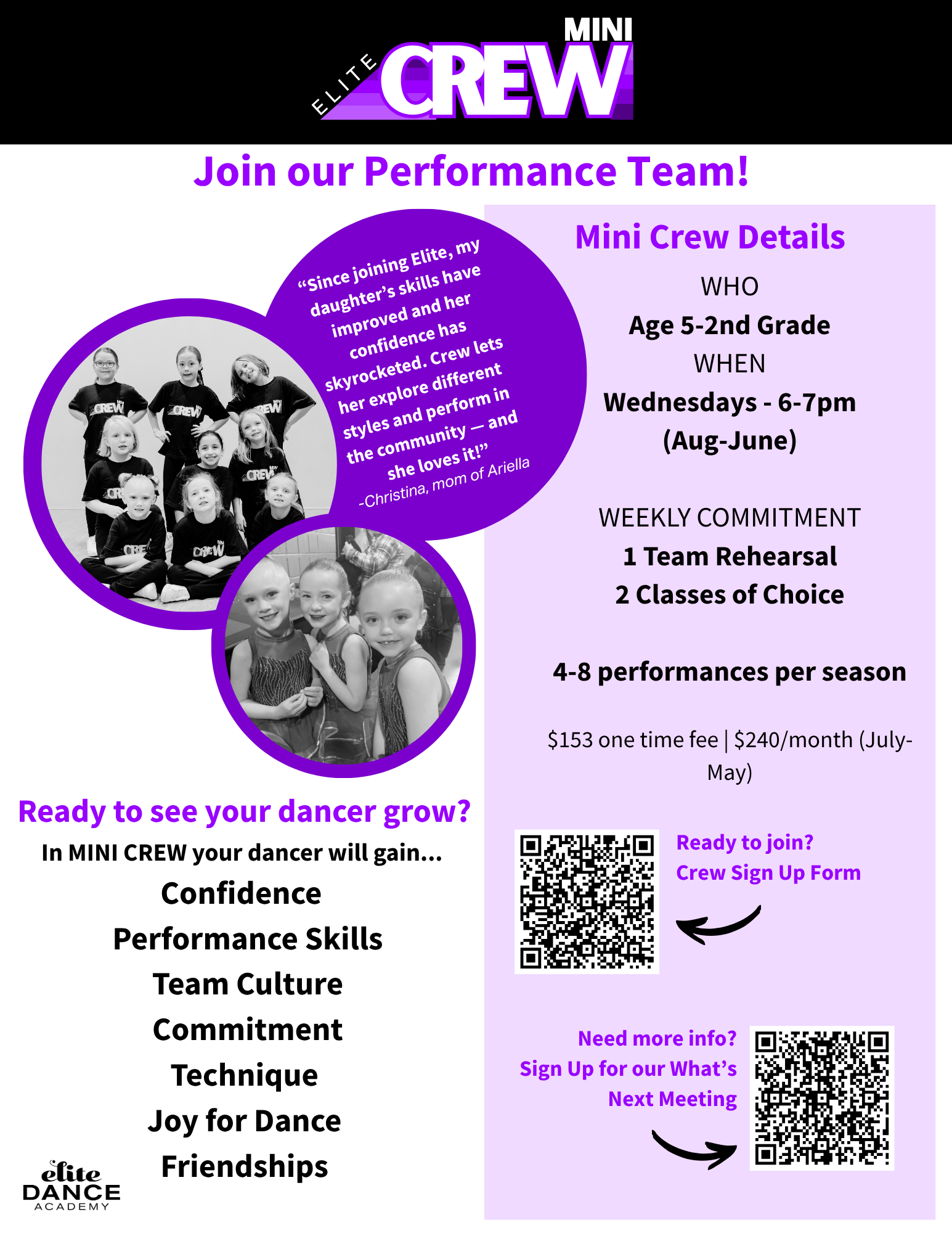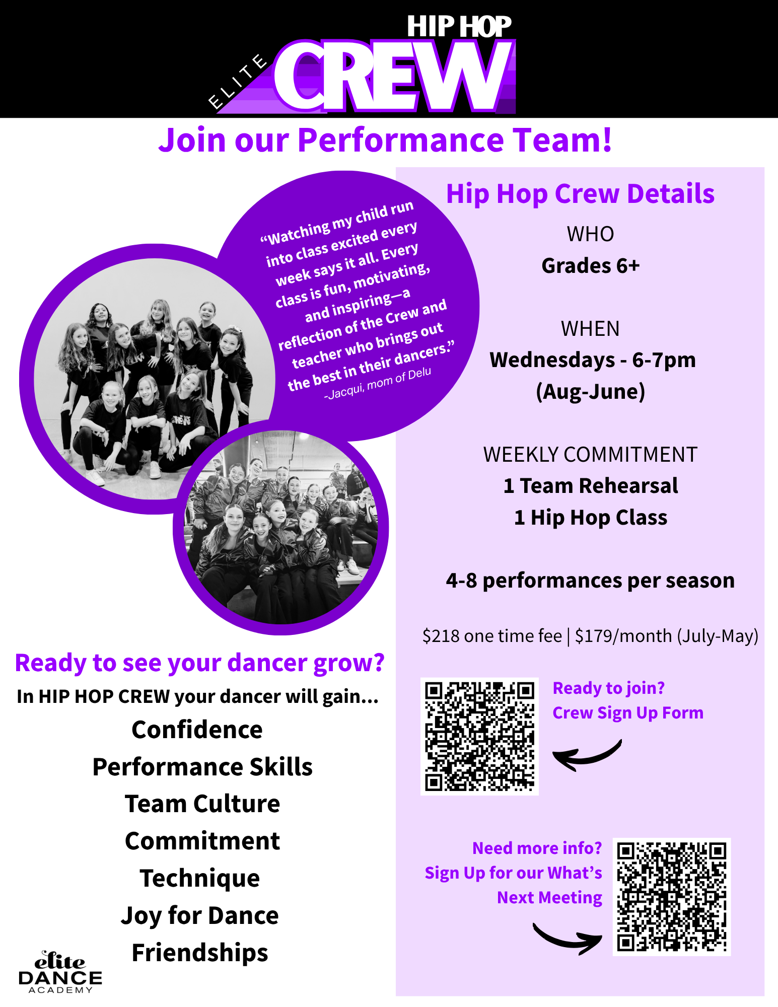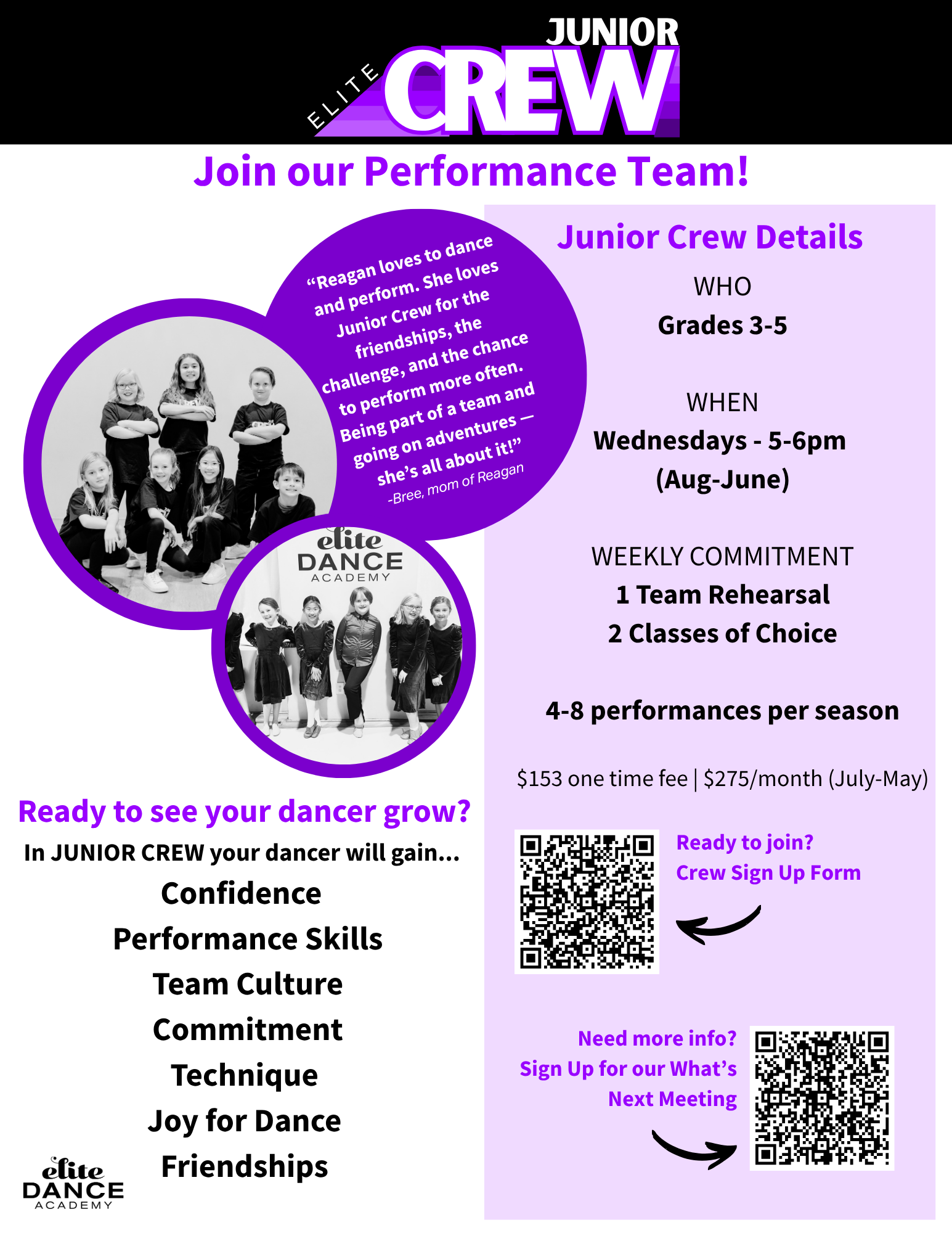 We have developed three teams to help kids of all ages who want to dance more. Joining a team will set your child on the fast track to success!