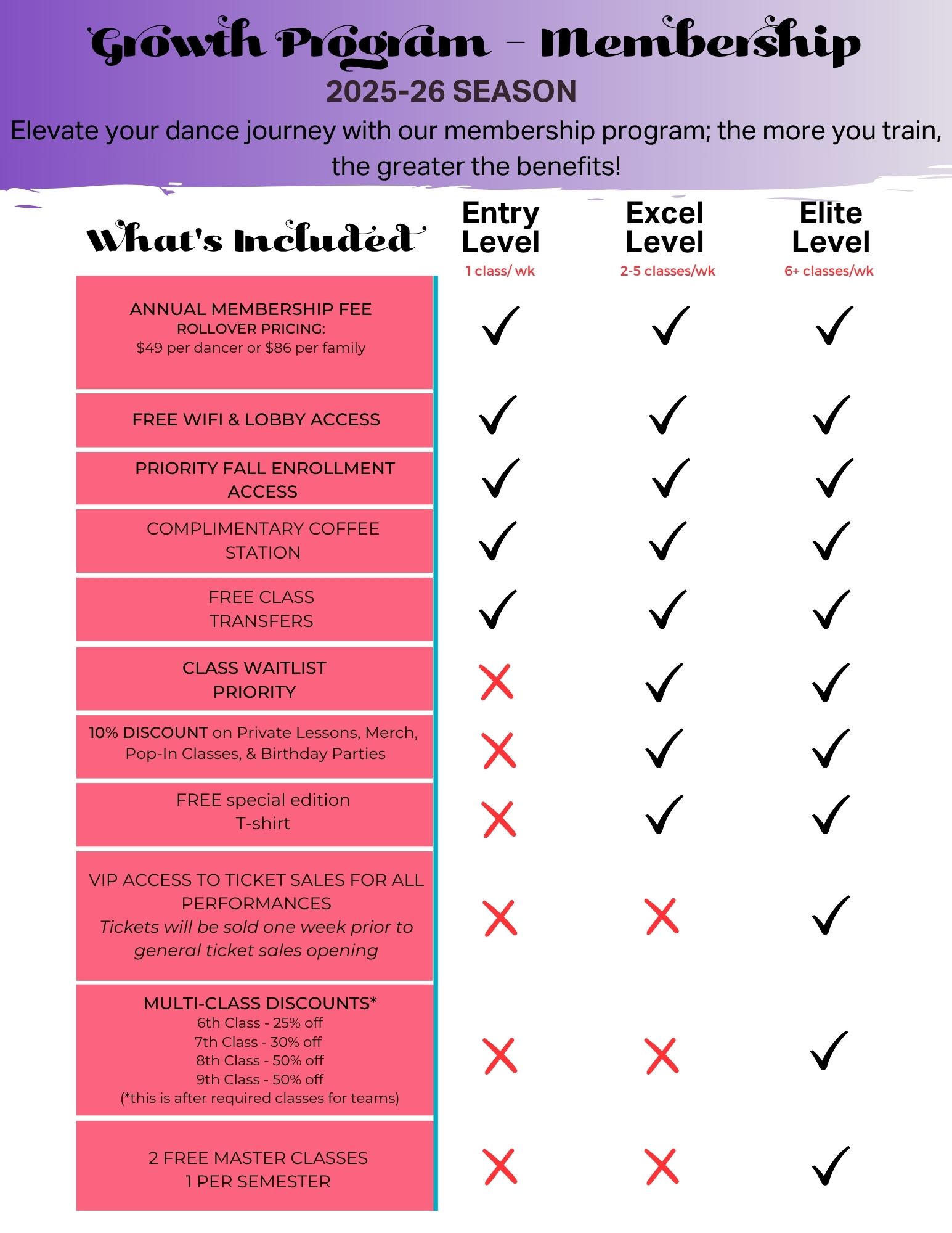 The cost for your drop-in class will be applied to a Monthly Package if registration is completed within the same month of drop in class being attended.